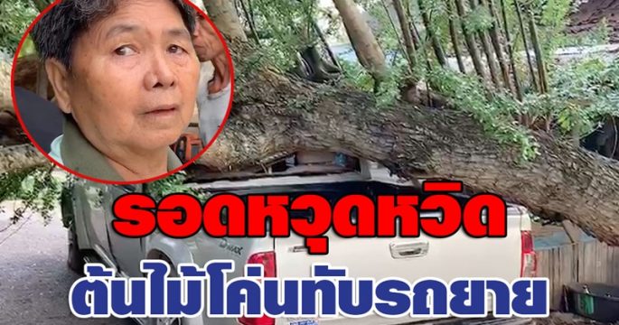 ต้นไม้โค่นทับรถกระบะ คนขับวัย 67 รอดหวุดหวิด