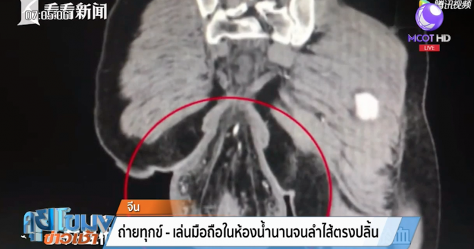 หนุ่มชาวจีนนั่งถ่ายทุกข์ในห้องน้ำพร้อมกับเล่นมือถือไปด้วยนาน 30 นาที จนส่วนของลำไส้ตรงหรือลำไส้ใหญ่หลุดปลิ้นออกจากรูทวารหนัก