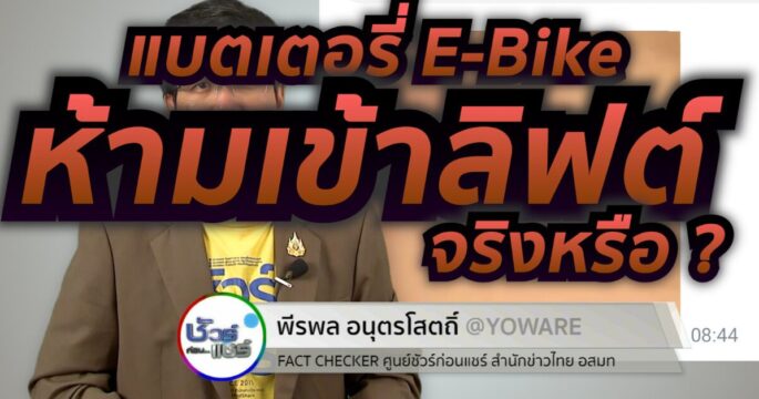 ชัวร์ก่อนแชร์ : ห้ามนำแบตเตอรี่ E-Bike เข้าลิฟต์ จริงหรือ ?