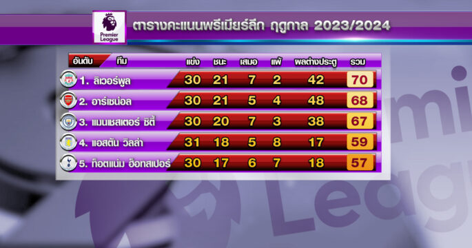 เลเวอร์คูเซน เปิดบ้านชนะ ดุสเซลดอร์ฟ ฟุตบอลเดเอฟเบ โพคาล เยอรมนี ทำสถิติไร้พ่าย 40 เกมติดต่อกัน ส่วนอาร์เซน่อล แซงลิเวอร์พูล ขึ้นนำจ่าฝูงพรีเมียร์ลีก