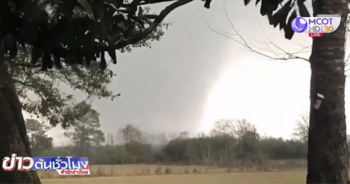 พายุทอร์นาโดโหมกระหน่ำรัฐลุยเซียนา บ้านเรือนเสียหาย ต้นไม้และเสาไฟฟ้าหักโค่น บ้านเรือนถูกตัดไฟฟ้าเกือบ 6,000 หลัง มีผู้เสียชีวิตแล้วอย่างน้อย 1 คน