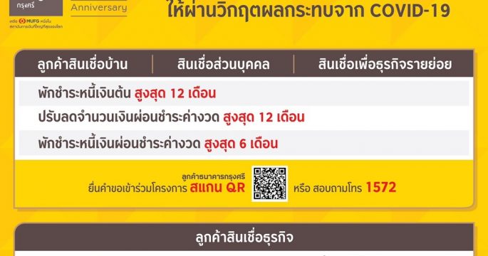 ธนาคารกรุงศรีอยุธยาและบริษัทในเครือออกมาตรการเพิ่มเติมช่วยเหลือลูกค้าทุกกลุ่มที่ได้รับผลกระทบจากไวรัสโควิด-19