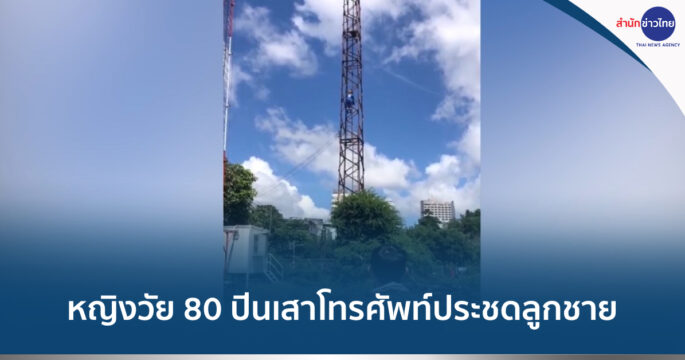 หญิงวัย 80 ปี น้อยใจลูกชายไม่ให้กู้เงินธนาคาร ปีนเสาโทรศัพท์ประชด กู้ภัยรีบส่งเจ้าหน้าที่ขึ้นไปช่วยเหลือและพยายามเกลี้ยกล่อมแต่ไม่ยอมลง บอกรอลูกชาย สุดท้ายลูกชายมาจึงยอมปืนลงมาปลอดภัย