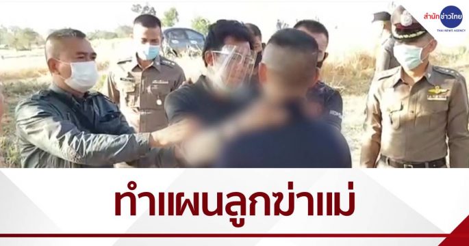 ตำรวจชัยภูมิคุมตัวลูกทรพี บีบคอแม่จนแน่นิ่ง แล้วกระทืบซ้ำจนเลือดทะลักเสียชีวิต มาทำแผน ท่ามกลางเสียงสาปแช่งเรียกร้องให้ประหาร เหตุจากขอแบ่งที่นาและขอเงินแม่ 200 บาท ไปซื้อยาบ้ามาเสพ แต่แม่ไม่ให้ จึงแค้นวางแผนฆ่า