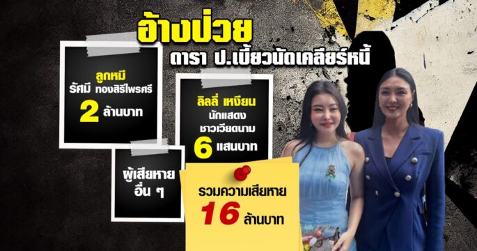 ดารา ป. ยืมเงินไม่คืน เบี้ยวนัดรอบ 2 อ้างป่วย