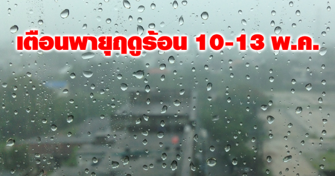 กรมอุตุฯ เตือนประเทศไทยตอนบนระวังพายุฤดูร้อน ช่วงวันที่ 10-13 พ.ค.นี้ เริ่มมีผลกระทบบริเวณภาคอีสานและภาคตะวันออกก่อน โดยจะมีฝนฟ้าคะนอง ลมกระโชกแรง และลูกเห็บตกบางพื้นที่