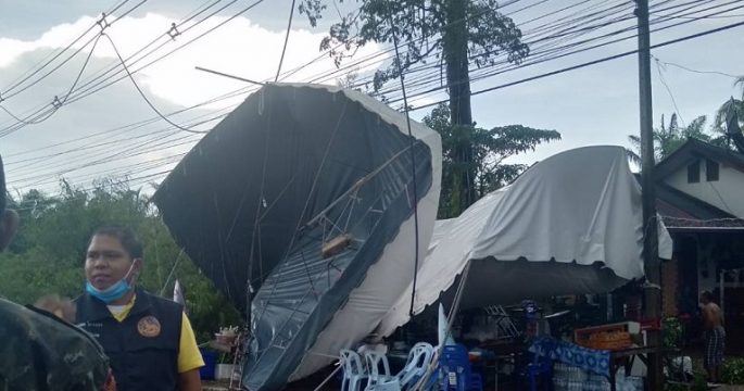 พายุฤดูร้อนกระหน่ำกระบี่ลมหอบเต็นท์จุดคัดกรองเหนือคลองล้มปลิวพาดสายไฟฟ้าแรงสูง ไฟดับเป็นวงกว้าง เคราะห์ดีไม่มีเจ็บ ส่วนลำปางลูกเห็บตกหลายอำเภอ มากสุดที่แม่ทะ บางพื้นที่ขาวโพลน