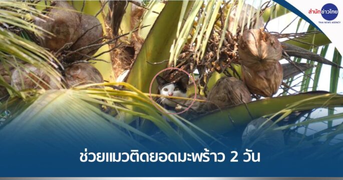 ลูกแมวติดต้นมะพร้าว เรียกกู้ภัยช่วย