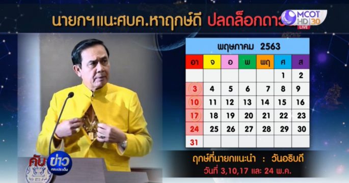 ทีมข่าวสำนักข่าวไทย ต่อสายคุยกับ แม่หมอพิมพ์ฟ้า ผู้เชี่ยวชาญด้านไพ่ยิปซีและโหราศาสตร์ ขอข้อมูล ฤกษ์ดีคลายล็อกดาวน์ของ ศบค. ซึ่งในทางโหราศาสตร์ วันอาทิตย์ ในเดือน พ.ค. นี้ เป็นวันอธิบดี แต่จะมีความหมายอย่างไร และคลายล็อกในวันเหล่านี้แล้วจะเป็นอย่างไร ติดตามจากรายงาน
