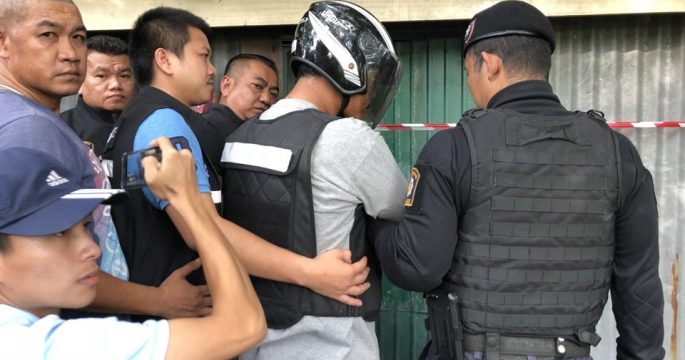 ตำรวจชุดสืบสวน สภ.เมืองพัทยา นำกำลังล่อซื้อยาเสพติดและอาวุธปืน นัดรับของริมถนนสุขุมวิท ผู้ต้องหาไหวตัวถอยรถหนีกว่า 500 เมตร ชาวบ้านจอดติดไฟแดง ขยับรถหนีอุตลุด ก่อนชนรถกระบะ เจ้าหน้าที่ตัดสินใจไล่ยิงสกัดยาง คนร้ายกระโดดลงรถเก๋งคู่ใจ วิ่งหนีเข้าป่า