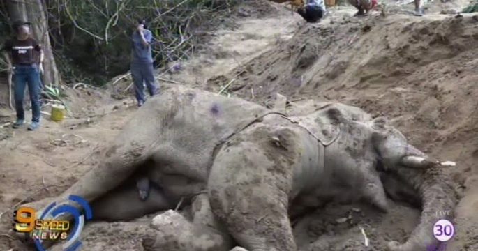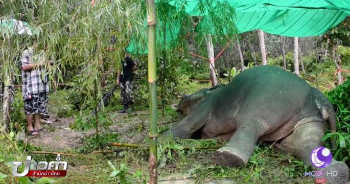 ช้างป่า เขตรักษาพันธุ์สัตว์ป่าเขาอ่างฤาไน ถูกลวดไฟฟ้าที่ชาวบ้านขึงดักไว้ช็อตล้ม ขณะออกมาหากินในพื้นที่เกษตรกรรม สภาพงวงยังม้วนเกี่ยวเส้นลวดเอาไว้ ตำรวจประสานทีมสัตวแพทย์คชบาล เร่งผ่าพิสูจน์ซากพรุ่งนี้