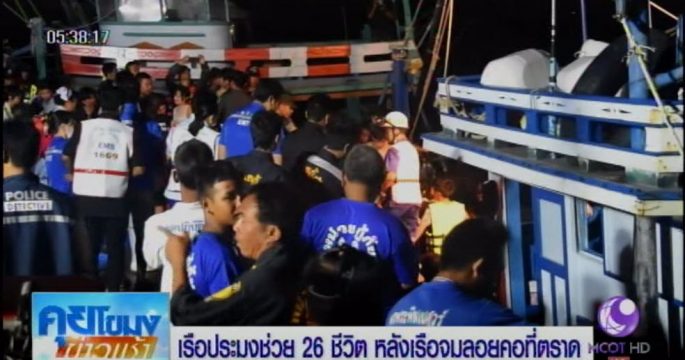 เรือสำราญอ่าวพะยอมล่มในอ่าวตราด จากเหตุฝนตกหนัก คลื่นลมแรง เรือประมงเข้าช่วยเหลือ 26 ชีวิตปลอดภัย
