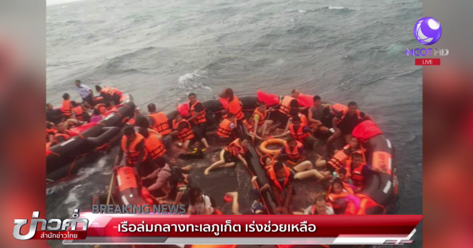 เรือนำนักท่องเที่ยวไปดำน้ำล่มกลางทะเลหน้าเกาะเฮ อ.เมืองภูเก็ต ขณะนำนักท่องเที่ยวซึ่งเป็นทัวร์ดำน้ำ ทำให้นักท่องเที่ยวและไดร์มาสเตอร์ ลูกเรือ รวม 97 คน ลอยคอรอการช่วยเหลือ ล่าสุดทัพเรือภาค 3 จัดส่งเรือให้ความช่วยเหลือแล้ว
