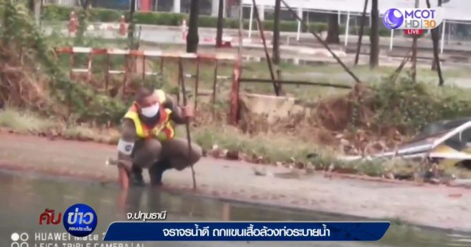 ประชาชนแห่ชื่นชมตำรวจจราจร ใช้มือเปล่าล้วงขยะมูลฝอยดินโคลนที่อุดตันในท่อระบายน้ำ ที่สร้างปัญหาน้ำท่วมขัง