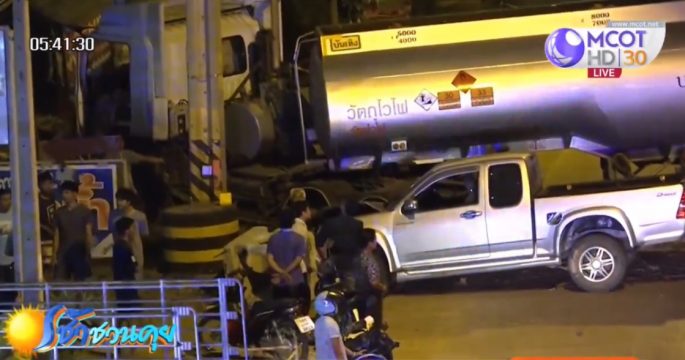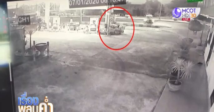 ล้อรถพ่วงบรรทุกอ้อยหลุดจากตัวรถ กลิ้งข้ามเกาะกลางถนน ข้ามฝั่งเข้าไปสงบนิ่ง ในปั๊มก๊าซ เคราะห์ดีล้อหมดแรงเสียก่อนไม่กระแทกกับหัวจ่าย และโดนคน