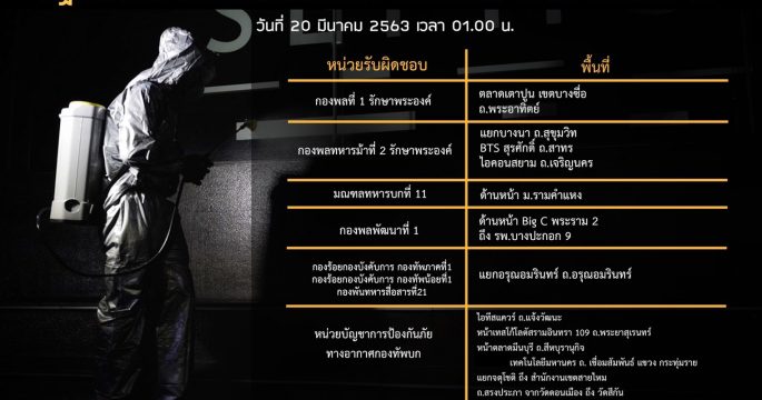 ทบ.เดินหน้าปฏิบัติการล้างสิ่งปนเปื้อน ขจัดการแพร่ระบาดเชื้อโควิด-19 ใน กทม. ล่าสุดคืนนี้ลงอีก 16 พื้นที่ ทั้ง ตลาดสด, ย่านการค้ามหาวิทยาลัย, ท่ารถ, ขอประชาชนไม่จอดรถ-วางสิ่งของตามเส้นทาง