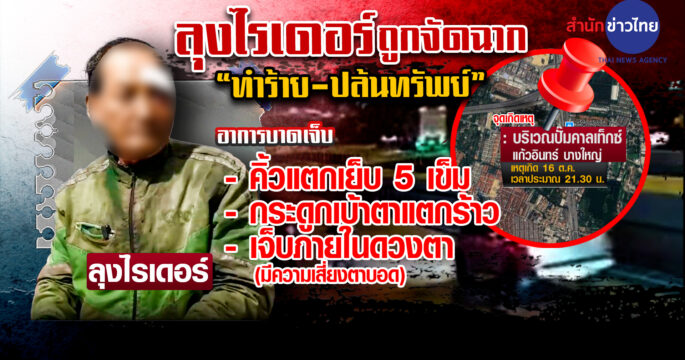 ภัยสังคมบนท้องถนน ลุงไรเดอร์ถูกสองชายฉกรรจ์จัดฉากให้ขี่ จยย.เฉี่ยว แล้วตบทรัพย์ ไม่พอถูกชกหน้าจนตาแตก โชคดีวงจรปิดจับภาพเหตุการณ์ได้