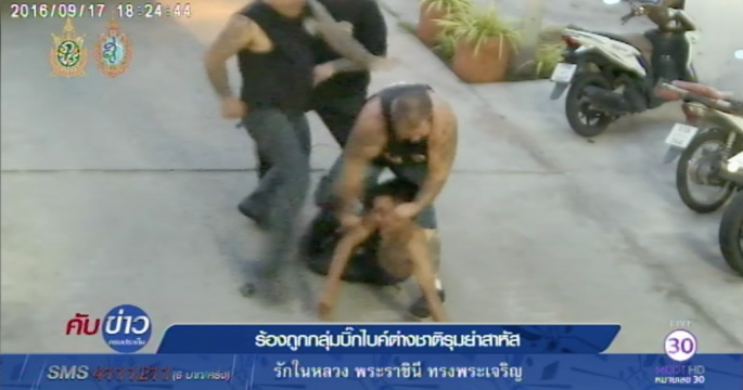 ภาพวงจรปิดจับภาพกลุ่มนักท่องเที่ยวชาวต่างชาติรุมทำร้ายชาย 2 คน ซึ่งเป็นหลานคนขายข้าวแกงบริเวณวัดชัยมงคล ได้รับบาดเจ็บสาหัส