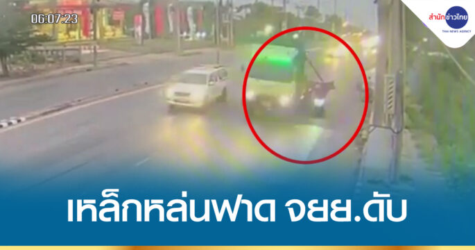 วงจรปิดจับภาพรถบรรทุกสิบล้อซิ่งทำเหล็กหลุดฟาดหญิงวัย 63 ปี ขณะขี่รถจักรยานยนต์ จนล้มลงเสียชีวิต ด้านลูกสาวเรียกร้องคู่กรณีรับผิดชอบ