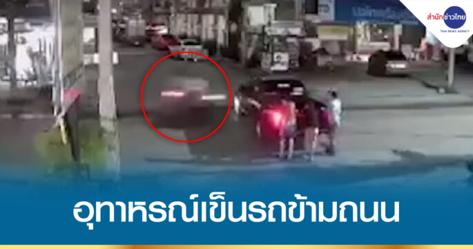 อุทาหรณ์! วงจรปิดจับภาพชาย 3 คน ช่วยกันเข็นรถกระบะข้ามถนน ถูกรถจักรยานยนต์พุ่งชนเข้าอย่างจัง ทั้งคนขี่และคนซ้อนได้รับบาดเจ็บ ส่วนรถพังยับเยิน