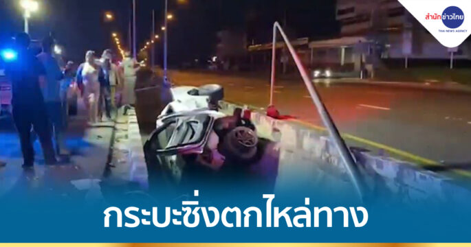 วงจรปิดจับภาพกระบะซิ่งหลุดโค้งชนเข้าเสาไฟส่องสว่างบริเวณหน้าศูนย์บ้านพักคนชราบางละมุง จ.ชลบุรี ก่อนพลิกคว่ำตกไหล่ทาง คนขับบาดเจ็บสาหัสติดคาซากรถ