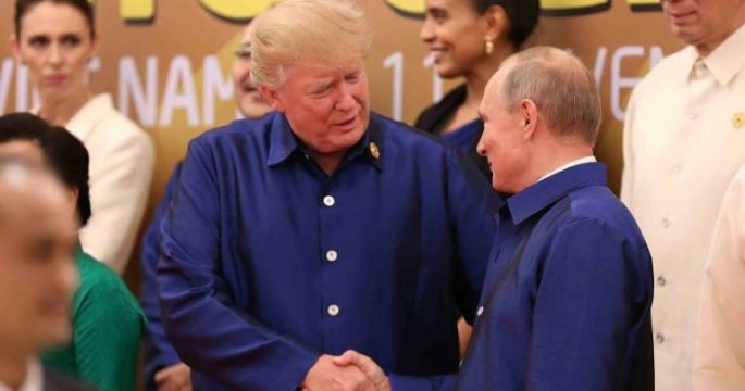 ประธานาธิบดีโดนัลด์ ทรัมป์ผู้นำสหรัฐ และประธานาธิบดีวลาดิเมียร์ ปูตินของรัสเซียได้จับมือทักทายเในงานเลี้ยงเอเปกที่เวียดนาม
