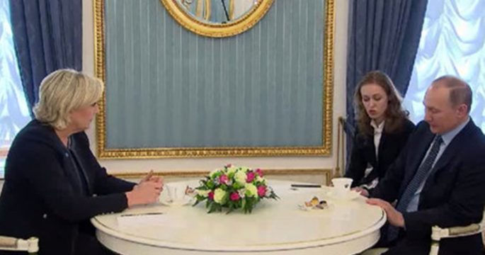 นางมารีน เลอ เปน หัวหน้าพรรคขวาจัดของฝรั่งเศสและเป็นผู้สมัครรับเลือกตั้งประธานาธิบดีเข้าพบประธานาธิบดีวลาดิเมียร์ ปูตินของรัสเซียในวันนี้
