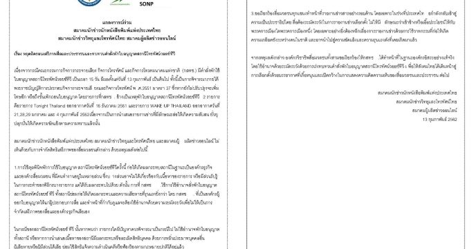แถลงการณ์ร่วมสมาคมนักข่าวนักหนังสือพิมพ์แห่งประเทศไทย สมาคมนักข่าววิทยุและโทรทัศน์ไทย สมาคมผู้ผลิตข่าวออนไลน์ เรื่อง หยุดลิดรอนเสรีภาพสื่อและประชาชนและทบทวนคำสั่งพักใบอนุญาตสถานีโทรทัศน์วอยซ์ทีวี