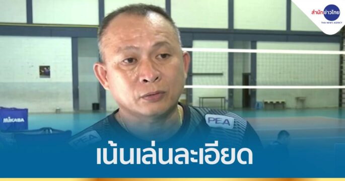 “โค้ชยุ่น” น.ท.มนต์ชัย สุภจิรกุล หัวหน้าผู้ฝึกสอนวอลเลย์บอลชายทีมชาติไทย ติวเข้มการรับบอลแรกและเล่นให้ละเอียด ในเกมพบ เกาหลีใต้ ศึกวอลเลย์บอลเอวีซี คัพ วันนี้ เวลา 15.00 น.
