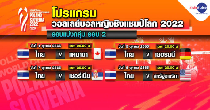 พาไปดูเส้นทางรอบแบ่งกลุ่ม รอบ 2 ของทีมนักตบลูกยางสาวไทย ในศึกวอลเลย์บอลหญิงชิงแชมป์โลก 2022 ซึ่งต้องเจอศึกหนัก ทั้งสหรัฐอเมริกา ทีมอันดับ 1 ของโลก และเซอร์เบีย ทีมอันดับ 4 ของโลก