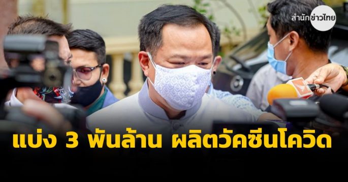 “อนุทิน” เผยแบ่งเงินกู้ผลิตวัคซีนโควิด 3,000 ล้านบาท