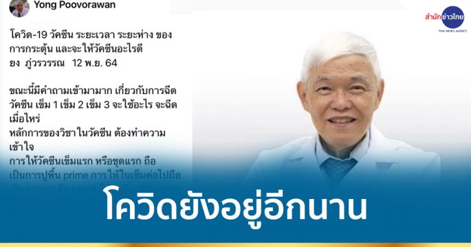 “หมอยง” ไขข้อข้องใจเรื่องวัคซีนโควิด-19 ระยะเวลา ระยะห่างของการกระตุ้น และชนิดของวัคซีน พร้อมชี้โควิดยังอยู่กับเราอีกนาน เชื่อว่ามีความจำเป็นต้องกระตุ้น เมื่อกระตุ้นเข็ม 3 แล้ว อาจยังต้องมีเข็มที่ 4 เข็มที่ 5 ในปีต่อๆ ไป