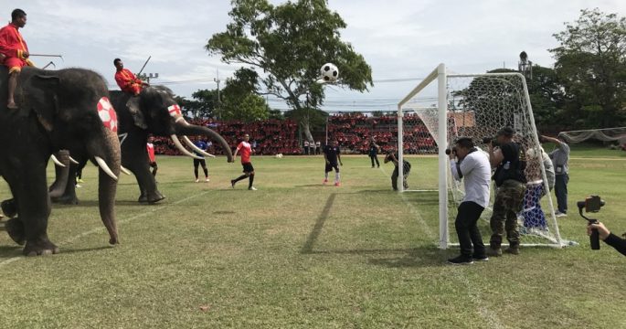 พระนครศรีอยุธยา 12 มิ.ย.- ช้างแสนรู้อยุธยาลงสนามเตะบอลแข่งกับทีมเยาวชน สร้างสีสันท่องเที่ยวรับฟุตบอลโลก 2018 จะเริ่มขึ้นในอีกไม่กี่วัน วันนี้ (12 มิ.ย.) ที่สนามโรงเรียนอยุธยาวิทยาลัย จ.พระนครศรีอยุธยา พ.จ.อ.สุวัฒน์ วรรพโกศลกุล รองนายกเทศมนตรีเทศบาลนครพระนครศรีอยุธยา และนายอิทธิพันธ์ ขาวละมัย ผู้จัดการวังช้างอยุธยาแลเพนียด พร้อมควาญช้างนำช้างแสนรู้ 9 เชือก ลงสนามเตะฟุตบอลแข่งกับทีมเยาวชนของโรงเรียนและทีมอาวุโสลายคราม เพื่อสร้างสีสันต้อนรับฤดูกาลแข่งขันฟุตบอลโลก ปี 2018 ที่จะมีขึ้นในวันที่ 14 มิ.ย.-15 ก.ค.นี้ โดยช้างทั้ง 9 เชือก จะถูกแต่งแต้มสีธงชาติของทีมฟุตบอลแต่ละประเทศที่คาดว่าเป็นตัวเก็ง สร้างความสนใจและรอยยิ้มให้กับนักเรียนและนักท่องเที่ยวเป็นอย่างมาก นายอิทธิพันธ์ กล่าวว่า ก่อนหน้านี้ทีมช้างได้ฝึกซ้อมมาหลายวัน เพื่อให้เกิดความคุ้นเคยกับลูกฟุตบอล การทำกิจกรรมนี้นอกจากจะรณรงค์การเล่นกีฬาปราศจากการพนันแล้ว และยังช่วยส่งเสริมการท่องเที่ยวของจังหวัด โดยเฉพาะการสร้างความตระหนักให้กับเยาวชนในการชมฟุตบอลอย่างถูกต้องเหมาะสม ไม่กระทบกับการเรียน.-สำนักข่าวไทย