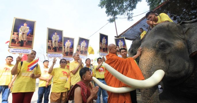 วังช้างอยุธยานิมนต์เกจิดังทำพิธีปะพรมน้ำมนต์ 11 ช้างงางาม ก่อนเคลื่อนเข้า กทม. ร่วมขบวน “คชสารคู่แผ่นดิน เทิดไท้องค์ราชัน” เพื่อถวายพระพรพระบาทสมเด็จพระเจ้าอยู่หัว