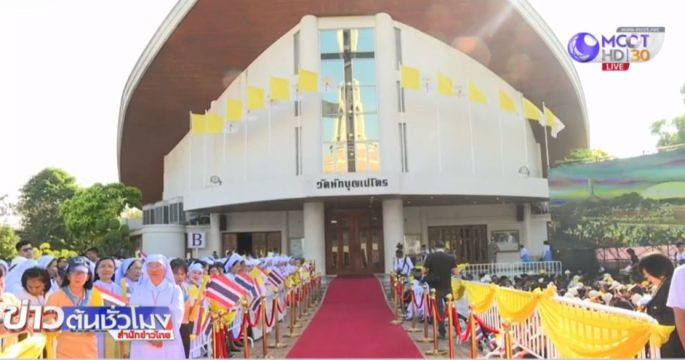 คริสตชนรอรับเสด็จสมเด็จพระสันตปาปาฟรังซิส ภายในวัดนักบุญเปโตร และสักการสถานบุญราศีนิโคลาส บุญเกิด กฤษบำรุง อ.สามพราน จ.นครปฐม เนืองแน่น