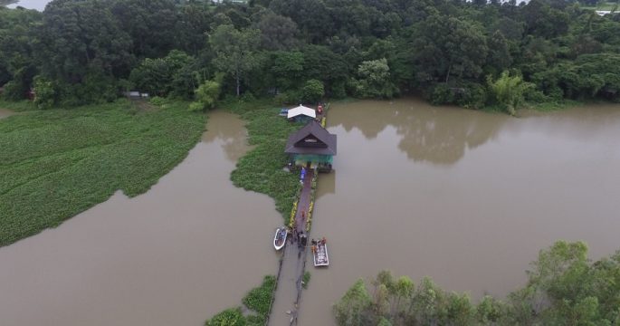 น้ำจ่อท่วมสะพานวัดป่าเมืองมหาสารคาม พระเณรย้ายอีกรอบ