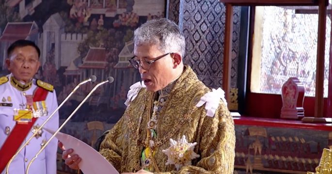 พระบาทสมเด็จพระเจ้าอยู่หัว มีพระราชดำรัสประกาศพระองค์ เป็นพุทธศาสนูปถัมภก และถวายบังคมพระบรมรูปสมเด็จพระบูรพมหากษัตริยาธิราช ณ วัดพระศรีรัตนศาสดาราม และปราสาทพระเทพบิดร