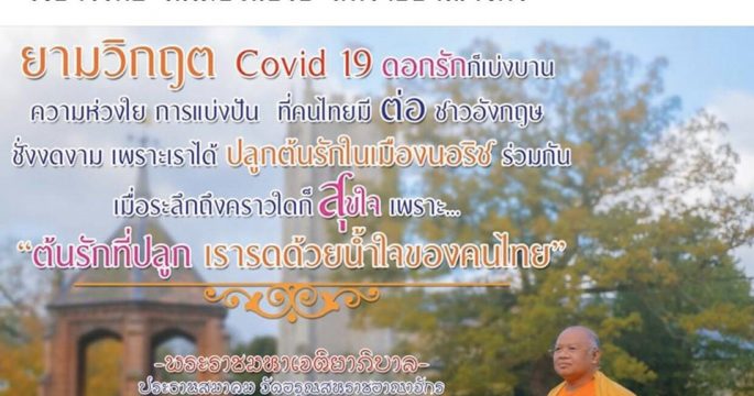 วัดไทยในอังกฤษและชุมชนชาวไทยเมืองนอริช ร่วมตั้งโรงทานตามพระดำริสมเด็จพระสังฆราช ช่วยคนไทยในต่างแดนที่ลำบากจากโควิด-19