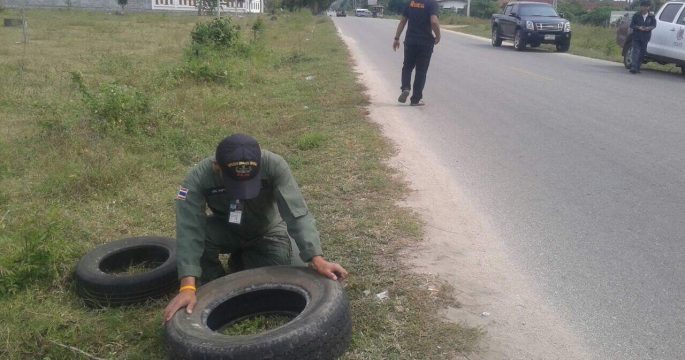 อีโอดีกู้วัตถุต้องสงสัยพันผ้าเทปสีดำทิ้งริมถนนเมืองประจวบฯ อย่างเรียบร้อย ที่แท้เป็นก้อนหิน คาดวัยรุ่นคะนองมือ