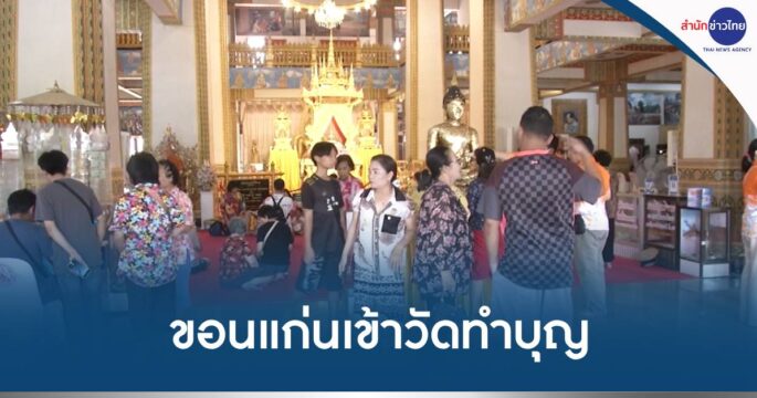 ญาติผู้ใหญ่พาลูกหลานเข้าวัดทำบุญ เพื่อความเป็นสิริมงคลต้อนรับสงกรานต์ โดยเฉพาะวันนี้ วัดธาตุ พระอารามหลวง จังหวัดขอนแก่น จัดงานเฉลิมฉลองหลวงพ่อพระลับครบ 500 ปี
