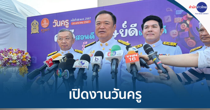 “อนุทิน” เปิดงานวันครู ครั้งที่ 68 ภายใต้แนวคิด ครูสอนดี ศิษย์เรียนดี มีความสุข ย้ำสิ่งสำคัญในการทำหน้าที่ ครู คือการ “วางฐานคิด” ครูต้องสร้างศิษย์เป็นคนดี และคิดสร้างสรรค์ พร้อมมอบรางวัลและประกาศเกียรติคุณผู้ประกอบวิชาชีพทางการศึกษาเพื่อเป็นกำลังใจ