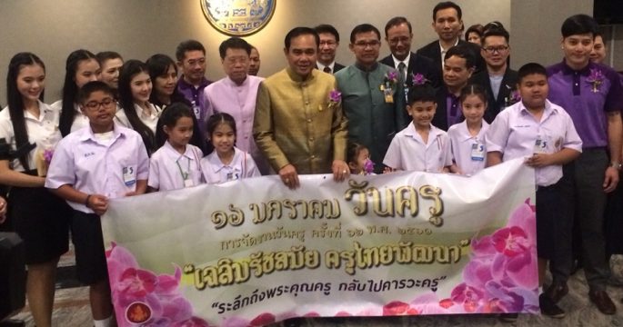 คุรุสภาจัดงานยกย่องเชิดชูเกียรติครู เนื่องในวันครู โดยอดีตครูที่เคยสอนนายกฯ ร่วมงาน กล่าวให้กำลังใจ และอยากให้อดทน ใจเย็น เพื่อทำงานให้ประเทศชาติ