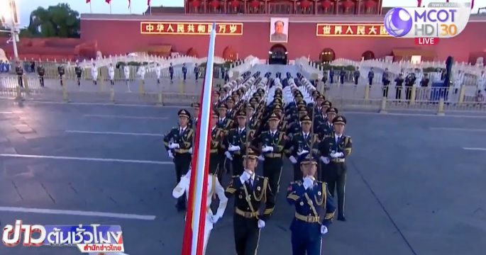 จีนจัดพิธีเชิญธงชาติขึ้นสู่ยอดเสา ที่บริเวณจตุรัสเทียนอันเหมิน ในกรุงปักกิ่ง เนื่องในโอกาสครบรอบ 69 ปีของการก่อตั้งสาธารณรัฐประชาชนจีน