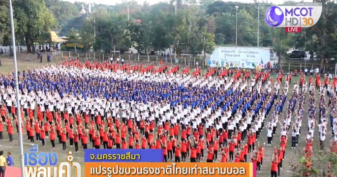 ชาวโคราชพร้อมใจร่วมแปรขบวนเป็นรูปธงชาติไทยขนาดใหญ่ เต็มพื้นที่สนามฟุตบอล เนื่องในวันชาติ บ่งบอกถึงความรัก-สามัคคี