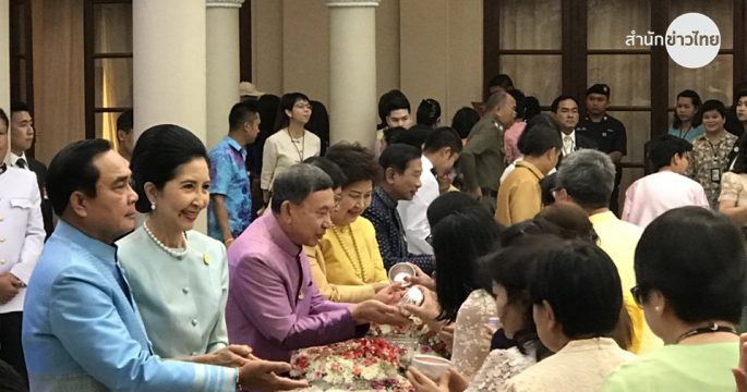 นายกรัฐมนตรี นำคณะรัฐมนตรีตักบาตรพระสงฆ์ 61 รูป สืบสานประเพณีสงกรานต์ ประจำปี 2561 เปิดให้รดน้ำขอพร เพื่อความเป็นสิริมงคลในโอกาสปีใหม่ไทย