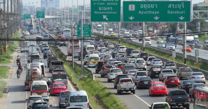 การจราจรบนถนนสายหลักมุ่งหน้าสู่ภาคตะวันออกและภาคอีสาน ปริมาณรถมาก เคลื่อนตัวได้ช้า สลับหยุดนิ่ง คาดปริมาณรถจะหนาแน่นตลอดทั้งวัน