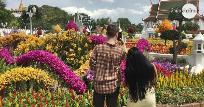 ประชาชนร่วมเก็บภาพความสวยงามไม้ดอกไม้ประดับรอบถนนราชดำเนิน เนื่องในโอกาสวันเฉลิมพระชนมพรรษาพระบาทสมเด็จพระเจ้าอยู่หัว 28 กรกฎาคม 2562