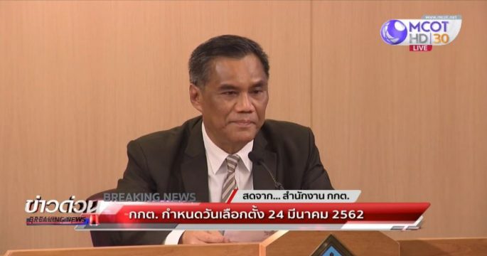 ประธาน กกต.แถลงแนวทางการเลือกตั้ง หลังมีพระราชกฤษฎีกาเลือกตั้ง ส.ส. โดยกำหนดวันเลือกตั้งเป็นวันที่ 24 มีนาคม 2562 วันรับสมัคร ส.ส.วันที่ 4-8 กุมภาพันธ์ เตรียมประกาศในราชกิจจานุเบกษา วันพรุ่งนี้