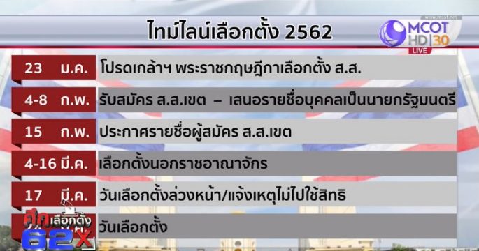 กกต.กำหนดวันเลือกตั้งส.ส. 24 มีนาคม เปิดรับสมัครส.ส.เขต วันที่ 4-8 ก.พ. เลือกตั้งนอกราชอาณาจักร วันที่ 4-16 มีนาคม เลือกตั้งล่วงหน้า 17 มีนาคม
