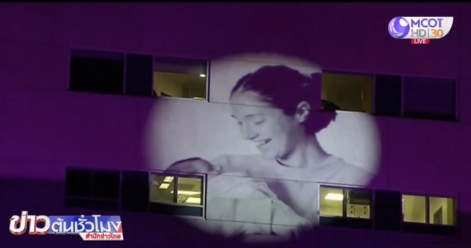 โรงพยาบาลหญิงในนครเมลเบิร์น ออสเตรเลีย ฉายภาพเหล่าคุณแม่และสตรีตั้งครรภ์บนผนังของโรงพยาบาล เพื่อเฉลิมฉลองวันแม่สากล ท่ามกลางการแพร่ระบาดของโควิด-19